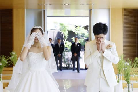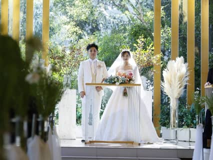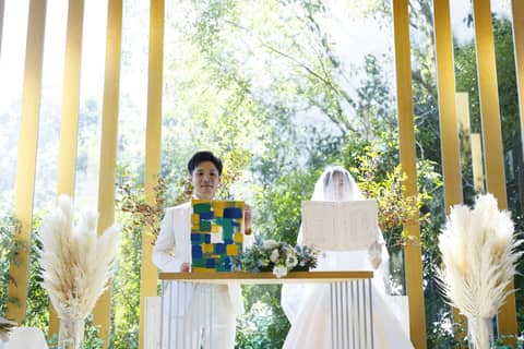 秋晴れの暖かな自然光とたくさんの緑に包まれながらのお式となりました。