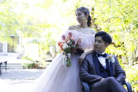 素敵なカラードレスへのお色直しをされ、敷地内のフォトスポットで沢山お写真を撮影させていただきました。